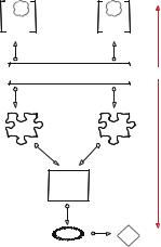 Contextuality scenarios Xi are composed into a composite contextuality scenario X, which aims to be a total theoretical picture of the phenomenon P . The composition must be sensitive to the experimental design, e.g., the no-signalling condition.
