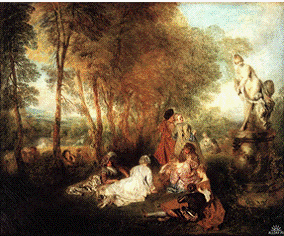 6. Приоритет жанров "галантной сцены" и пейзажа, часто сильно напоминающего оную.