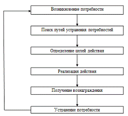 ) получение вознаграждения. Выполнив некую работу, индивид получает либо то, что возможно использовать для удовлетворения той самой потребности, либо то, что возможно будет обменять на нее. На этой стадии происходит понимание того, насколько выполнение человеком действий дало результат относительно мотивации (усиление, стабилизация, ослабление);