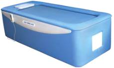 Для проведения сухого гидромассажа используется бесконтактная гидромассажная кушетка "Акварелакс". Поверхность кушетки - тонкое эластичное покрытие, позволяющее полностью исключить контакт пациента с водой. Встроенная система подогрева позволяет поддерживать заданную температуру воды.