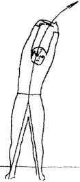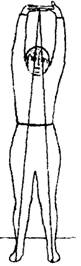 ИП - стойка, ноги врозь, руки вверх, голова между руками, плечи закрывают уши. Наклон начинается с подтягивания подбородка к шее и наклона головы к груди. Руки во время движения вперед "закрывают" уши и составляют единую линию со спиной. Упражнение выполняется медленно с сильным постепенным вытяжением. Возвращение в исходное положение осуществляется в обратном порядке. Подъем осуществляется с разгибания в тазобедренном суставе, затем спины от пояснично-крестцового отдела к грудному. При этом упражнении тело выстраивается в целостную дугу от кончиков пальцев рук до ног. Движение вниз и вверх выполняем с максимальным усилием, как будто толкаем поршень насоса вниз и вытягиваем обратно.