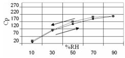 относительной влажности при ее увеличении от 10 % до 90 % и уменьшении до
