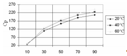 нагреве от 20 °С до 60 °С изменения усредненных значений емкости датчика
