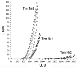 второй тип интерфейса - 2,53 В/мкм. По уровню автоэмиссионных токов образцы