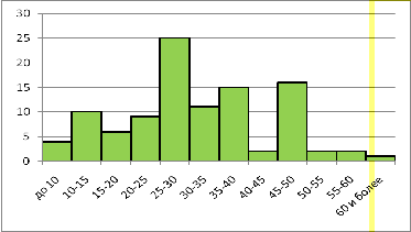 Распределение клиентов, воспользовавшихся услугами данной туристской фирмы в течение летнего сезона, по возрастному составу