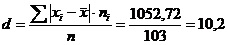 Среднее линейное отклонение представляет собой среднюю арифметическую из абсолютных значений отклонений отдельных вариантов от их средней арифметической. Среднее линейное отклонение показывает, насколько в среднем колеблется величина признака у единиц исследуемой совокупности, и выражается в тех же единицах измерения, что и варианты.