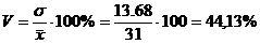 В заключении определяется однородность представленного признака путем расчета коэффициента вариации по формуле: