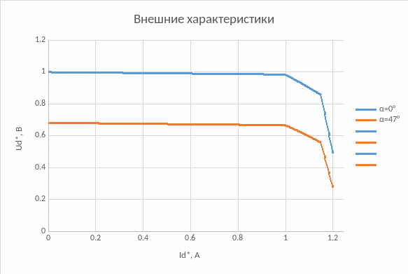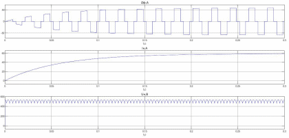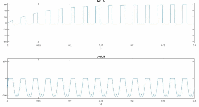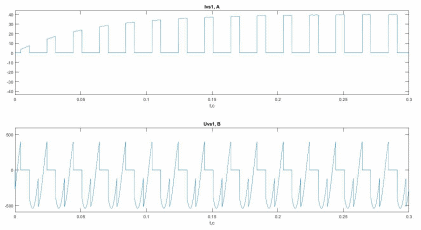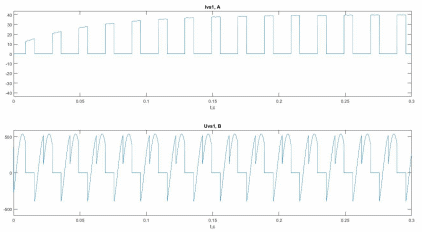 Промоделируем работу схемы в обоих режимах работы (выпрямителя и инвертора). Построим графики, отражающие работу схемы в одном масштабе.