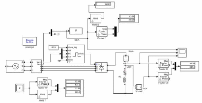 В спектре напряжения на нагрузке будут присутствовать все номера гармоник в обоих режимах работы установки.