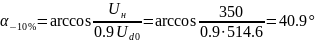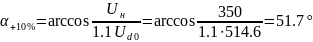 Равному по модулю номинальному напряжению соответствуют равные друг другу углы α и β.