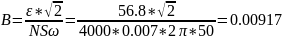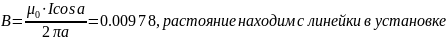 Расчётное значение B в центре контура |