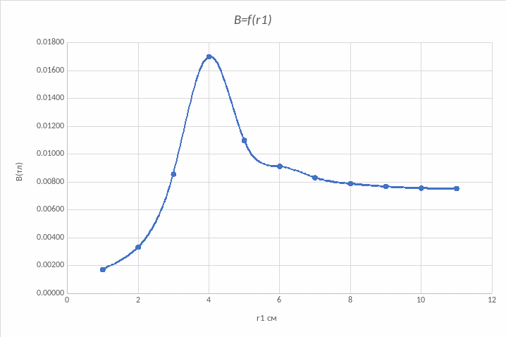 B = f(r1) (по данным таблицы 1)