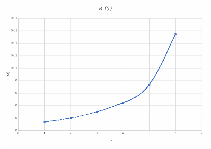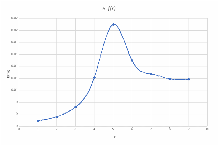B = f(r) (по данным таблицы 4)