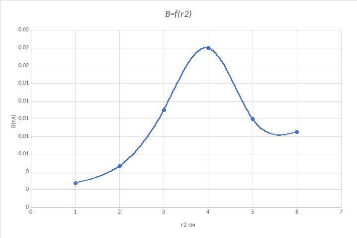 B = f(r2) (по данным таблицы 2)