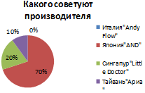 % респондентов, покупающих небулайзеры, предпочитают Японского производителя, 30% доверяют небулайзерам Сингапура, еще 20% - производства Тайвань и 10% Итальянским небулайзерам.