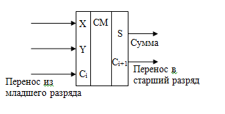 знакомым одноразрядным полным сумматором (условное изображение дано на рисунке