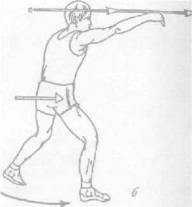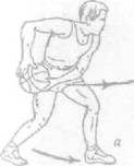 плечом, опускается локоть левой руки и выставляется вперед правая нога. В