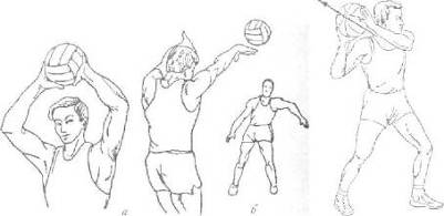 Рисунок 7,8. Передача мяча руками от плеча и от головы