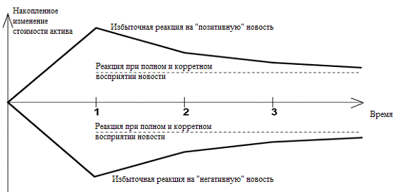 При этом необходимо заметить, что при хорошей экономической ситуации, когда у инвесторов нет повода игнорировать новости, сам по себе эффект более сильной реакции на потери может привести к избыточной реакции на неожиданные негативные новости.
