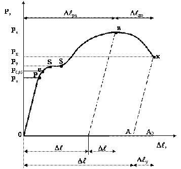 1.6 - Характерные участки и точки диаграммы растяжения