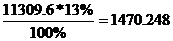 .) Определяем сумму налога на доходы физических лиц по ставки 13%, в руб.