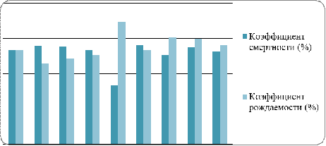 рассмотреть показатели коэффициентов смертности и рождаемости по регионам РФ за