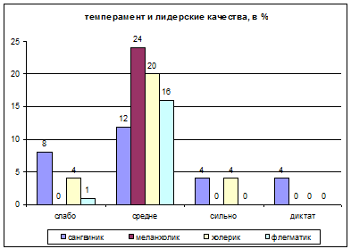 полученных данных была прослежена взаимосвязь лидерских качеств и темперамента,