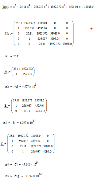 Исследуем устойчивость системы с помощью критерия Гурвица.