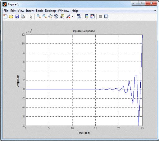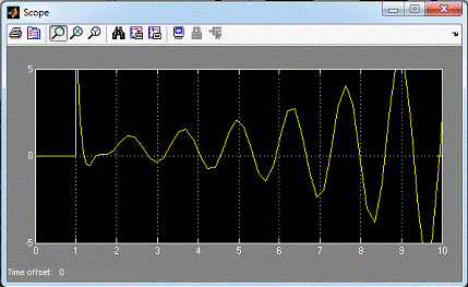В пакете MatLab также все исследования показали неустойчивость системы: по критерию Найквиста САУ неустойчива, осциллограф колебаний системы говорит о том же, да и корневой метод даёт неустойчивость (среди 16 корней все корни 2 корня неустойчивы).