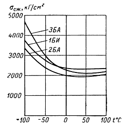На рисунке 1.4 и 1.5 показаны кривые изменения прочности магнитномягких и магнитножестких ферритов при сжатии в зависимости от температуры. Кривые показывают, что прочность магнитномягких