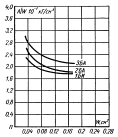 затраченной работы (А) к моменту сопротивления поперечного сечения образца (W), т. е.