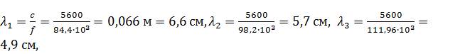 А. Если взять скорость звука в феррите равной 5600 м/с, то длина волны