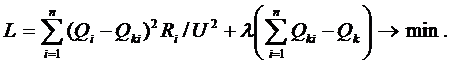 Для системы электроснабжения величина суммарной мощности компенсирующих устройств Qk может быть заданной какими-то техническими условиями. В этом случае заданную мощность Qk требуется оптимальным образом распределить внутри системы электроснабжения. Это уже задача условной оптимизации и решается, например, методом Лагранжа.
