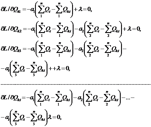 Решение системы (2.17) даст координаты абсолютного минимума функции Лагранжа (2.16) или относительного минимума целевой функции (4.14) при ограничениях (2.15).