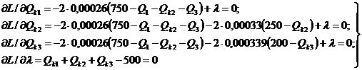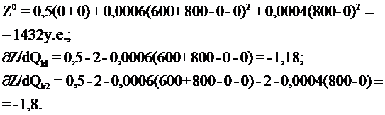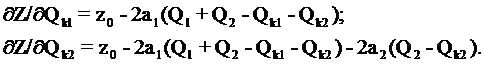 частные производные целевой функции Z по переменным Qki и