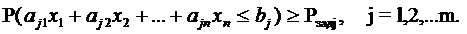 ограничение. Вероятность выполнения каждого j-го ограничения должна быть не меньше заданной