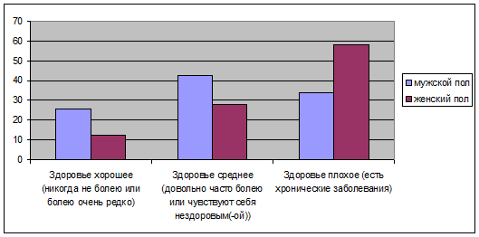 Рисунок Оценка респондентами своего здоровья в зависимости от пола
