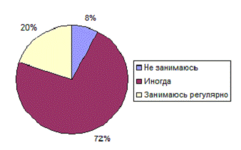 Что касается вопроса о занятии спортом, то результат опрошенных