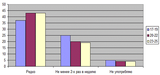 неделю). Это говорит о том, что молодые люди с помощью алкогольных напитков