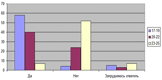Ответы/Возрастные группы17-1920-2223-25Итого: |