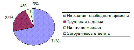 % - утверждают, что помехой являются трудности в делах. Совсем малый процент опрошенных отметили, что им ничего не мешает придерживаться ЗОЖ (Рисунок).
