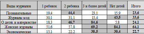 читательницы с тремя и более детьми отдают предпочтение журналам о детях и материнстве, экономическим и женским журналам.