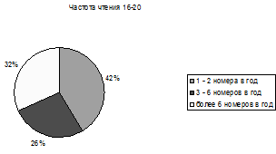 Рис. 2. Частота чтения журналов (16 - 20 лет).