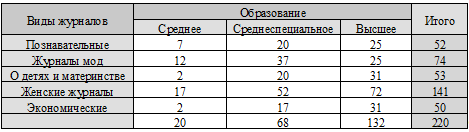 Таблица 3. Зависимость образования респондентов и видов журналов.