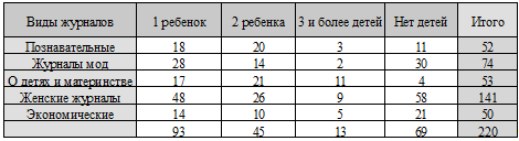 Таблица 5. Зависимость количества детей у читателей и видов журналов.