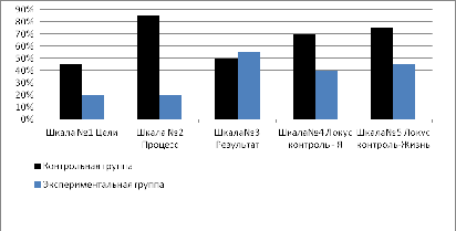 Рис. 2.2 Сравнение показателей по тесту смысложизненных ориентации