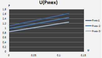 Построить зависимости U(Pмех) для заданных значений Xвн (0; 0,06; 0,08).