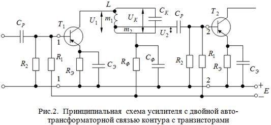 автотрансформаторное включение контура в усилитель с коэффициентами