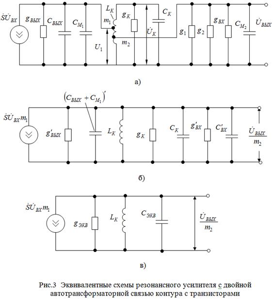 Двойное неполное включение контура, во-первых, уменьшает шунтирующее действие на резонансный контур выходной проводимости данного каскада и входной проводимости следующего каскада, что бывает необходимо для получения заданной полосы пропускания усилителя, и, во-вторых, согласовывает эти проводимости с целью получения максимального усиления.