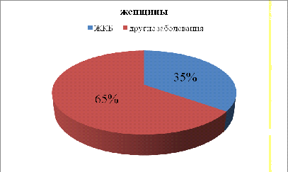 Рисунок № 3. Частота встречаемости ЖКБ у обследуемых женщин среди всех заболеваний гепатобилиарной системы